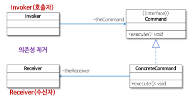 - ConcreteCommand의 기능을 실행하기 위해 사용하는 수신자 클래스입니다.